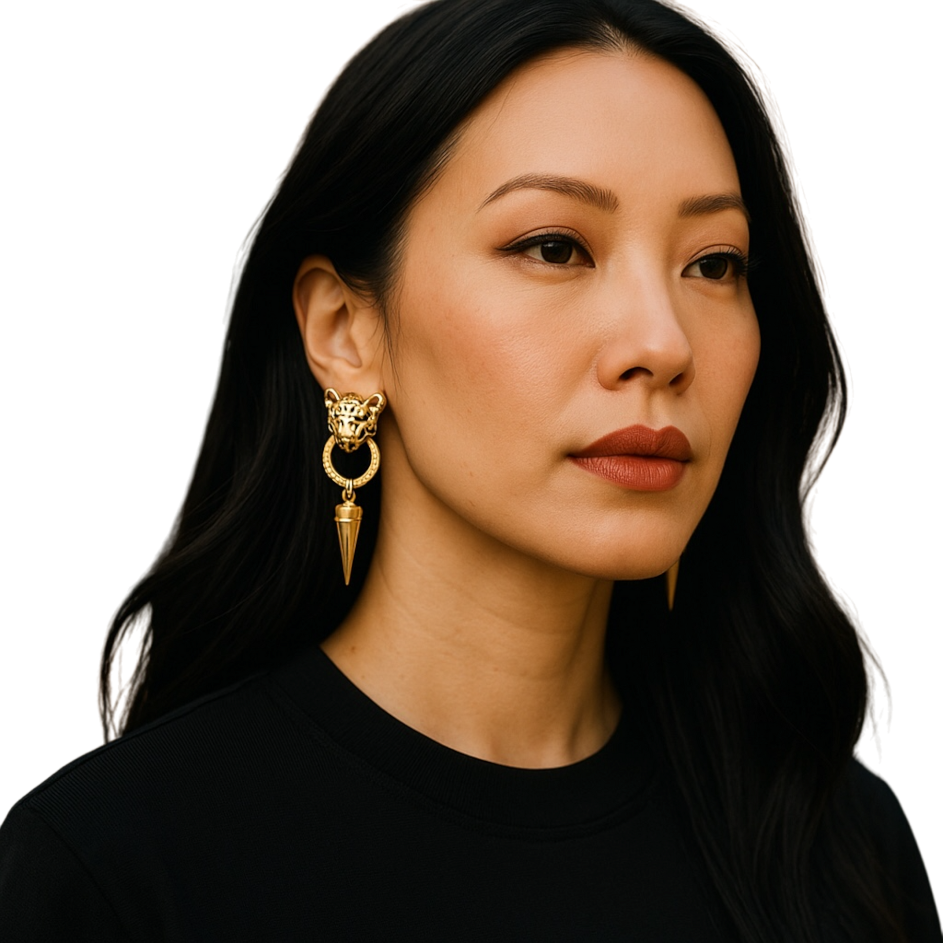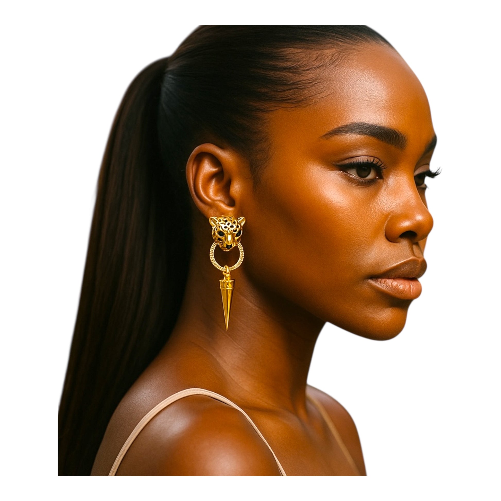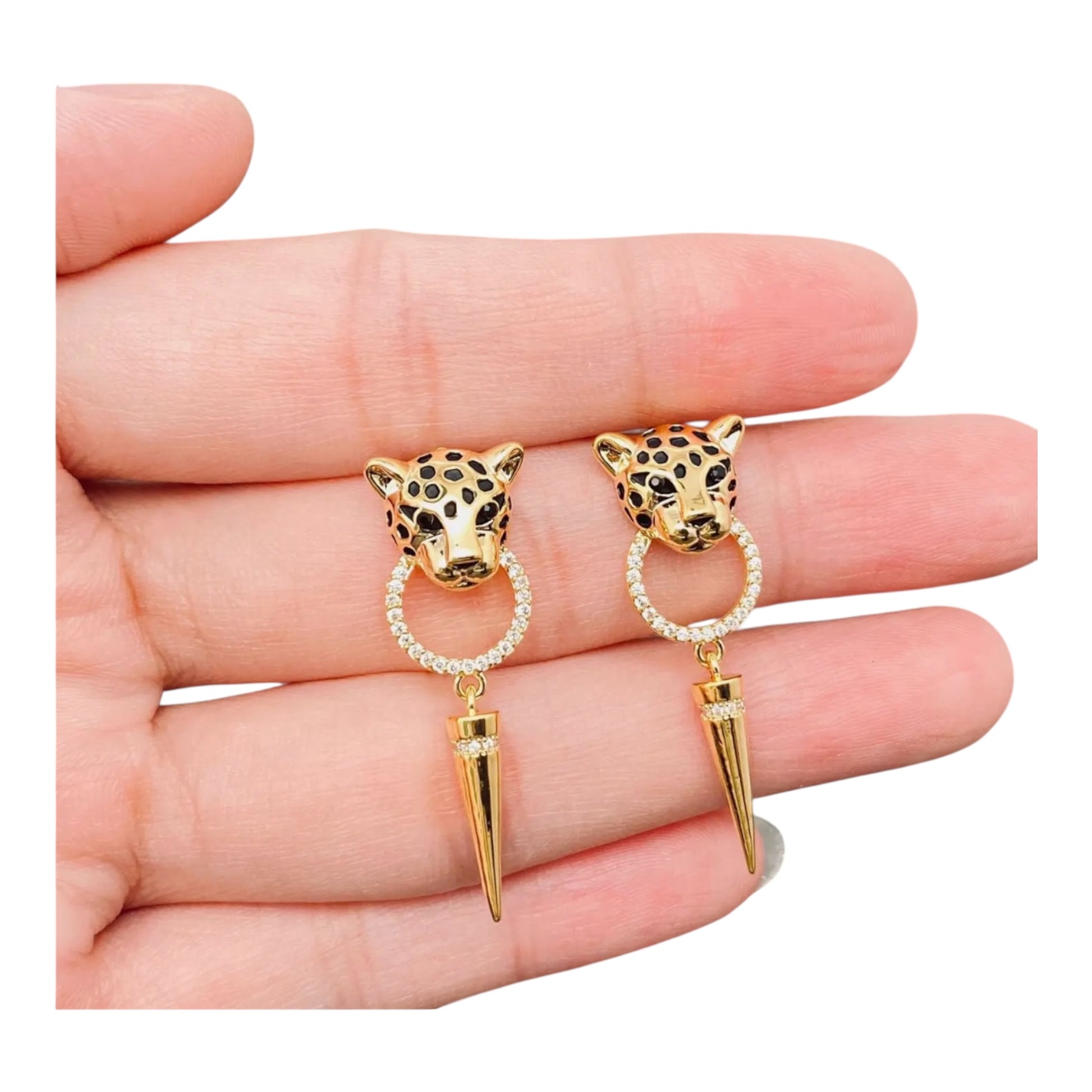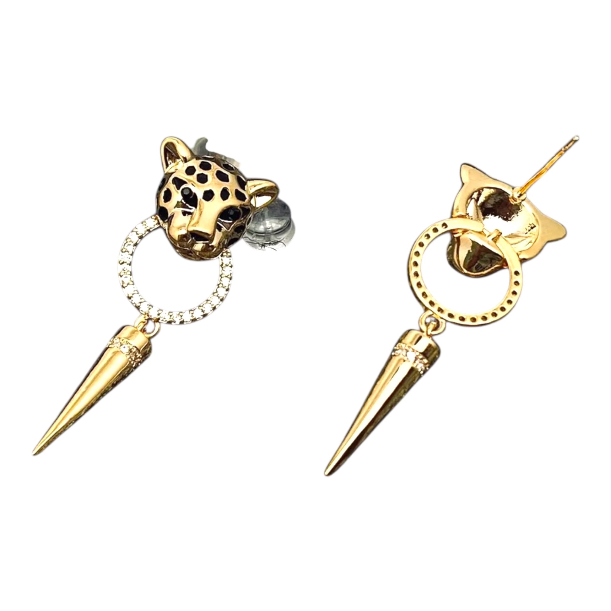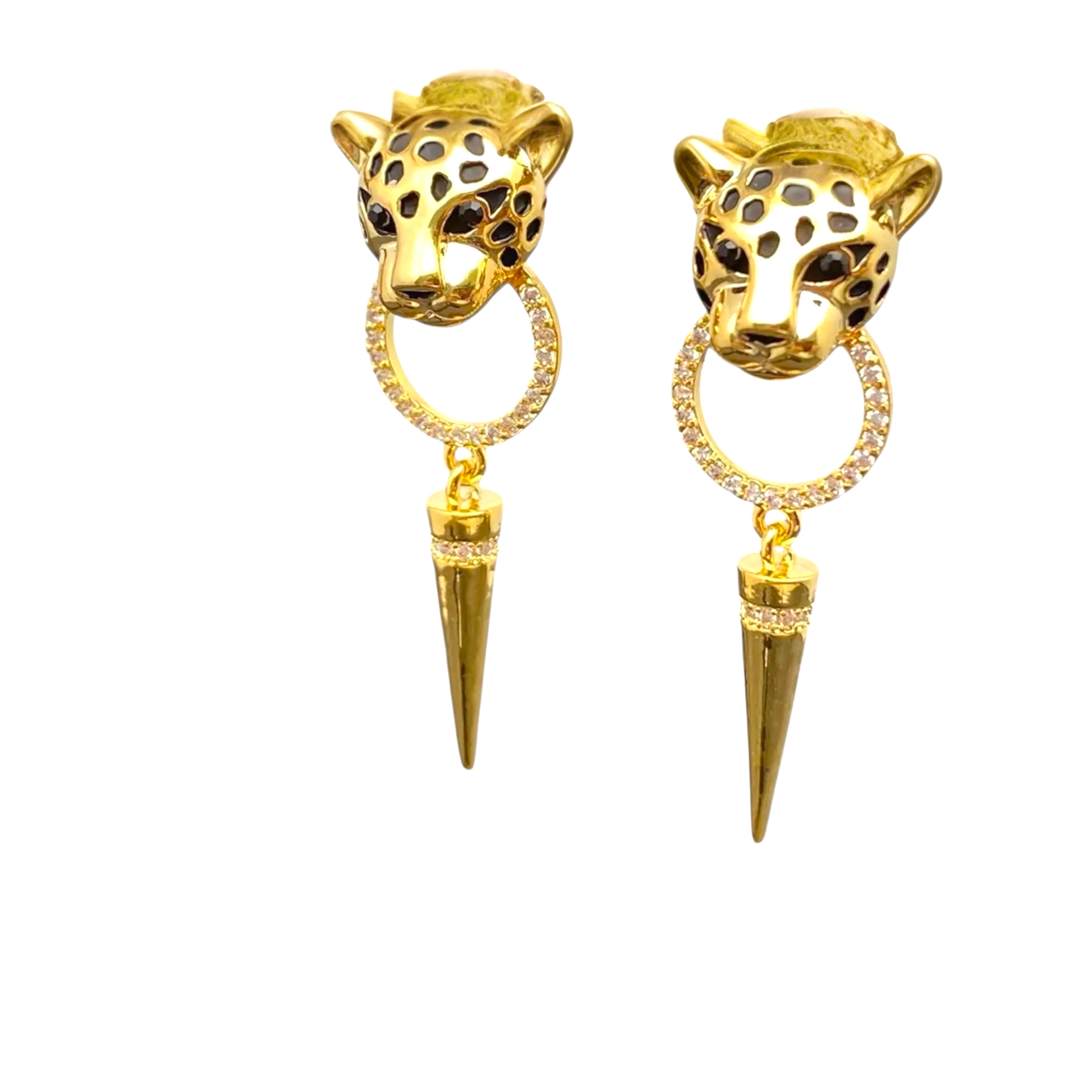 Our Nyx leopard head charm statement earrings are meticulously crafted to add a touch of elegance and sophistication to any outfit. Made with high-quality materials and featuring stunning designs, these earrings are a must-have accessory for fashion-forward individuals. With their exquisite gold-plated and stones finish, they exude a sense of luxury and opulence, making them perfect for special occasions or everyday wear.