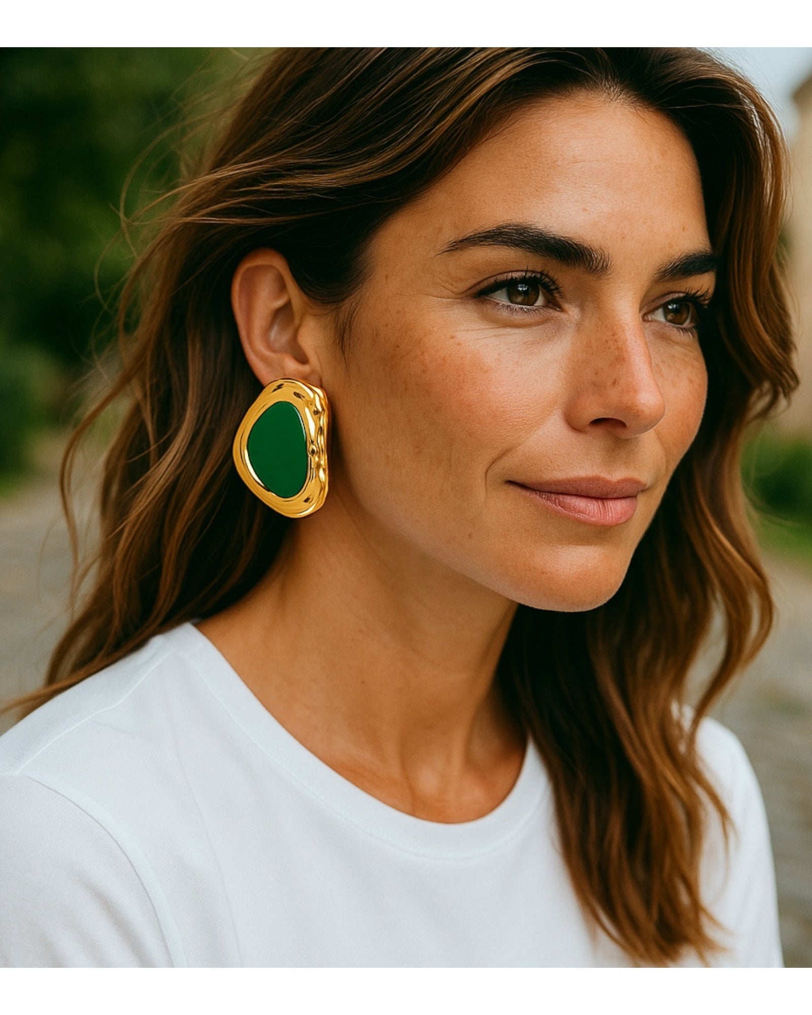 Our Viridis Non-Tarnish Green Stone Stud statement earrings are meticulously crafted to add a touch of elegance and sophistication to any outfit. Made with high-quality materials and featuring stunning designs, these earrings are a must-have accessory for fashion-forward individuals. With their exquisite stainless steel resin finish, they exude a sense of luxury and opulence, making them perfect for special occasions or everyday wear.