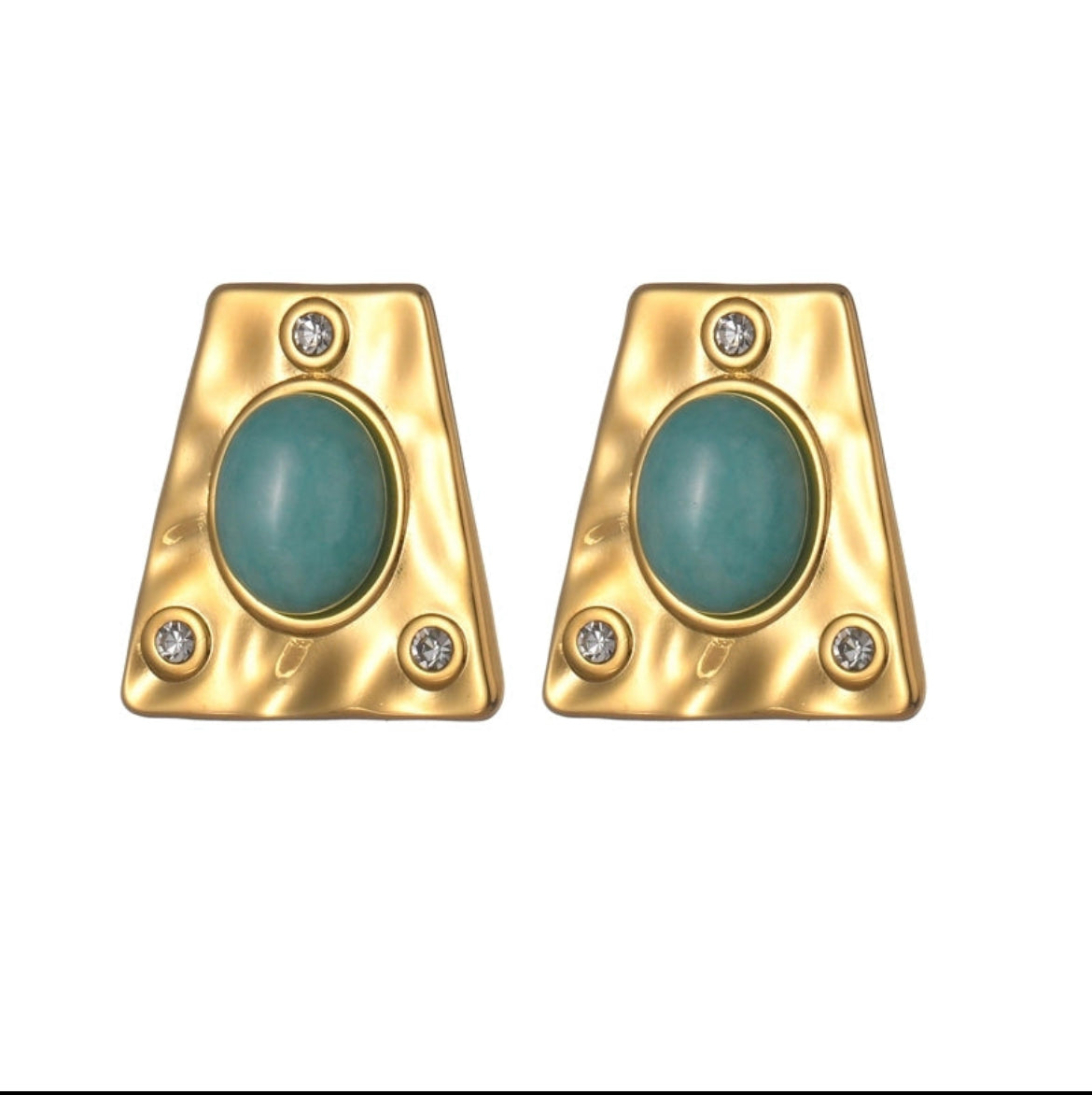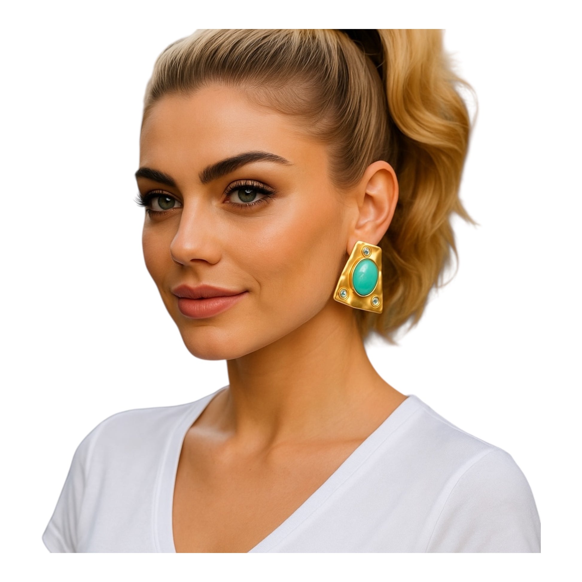 Our Ria French style trapezoid statement earrings are meticulously crafted to add a touch of elegance and sophistication to any outfit. Made with high-quality materials and featuring stunning designs, these earrings are a must-have accessory for fashion-forward individuals. With their exquisite gold-plated and stone finish, they exude a sense of luxury and opulence, making them perfect for special occasions or everyday wear.