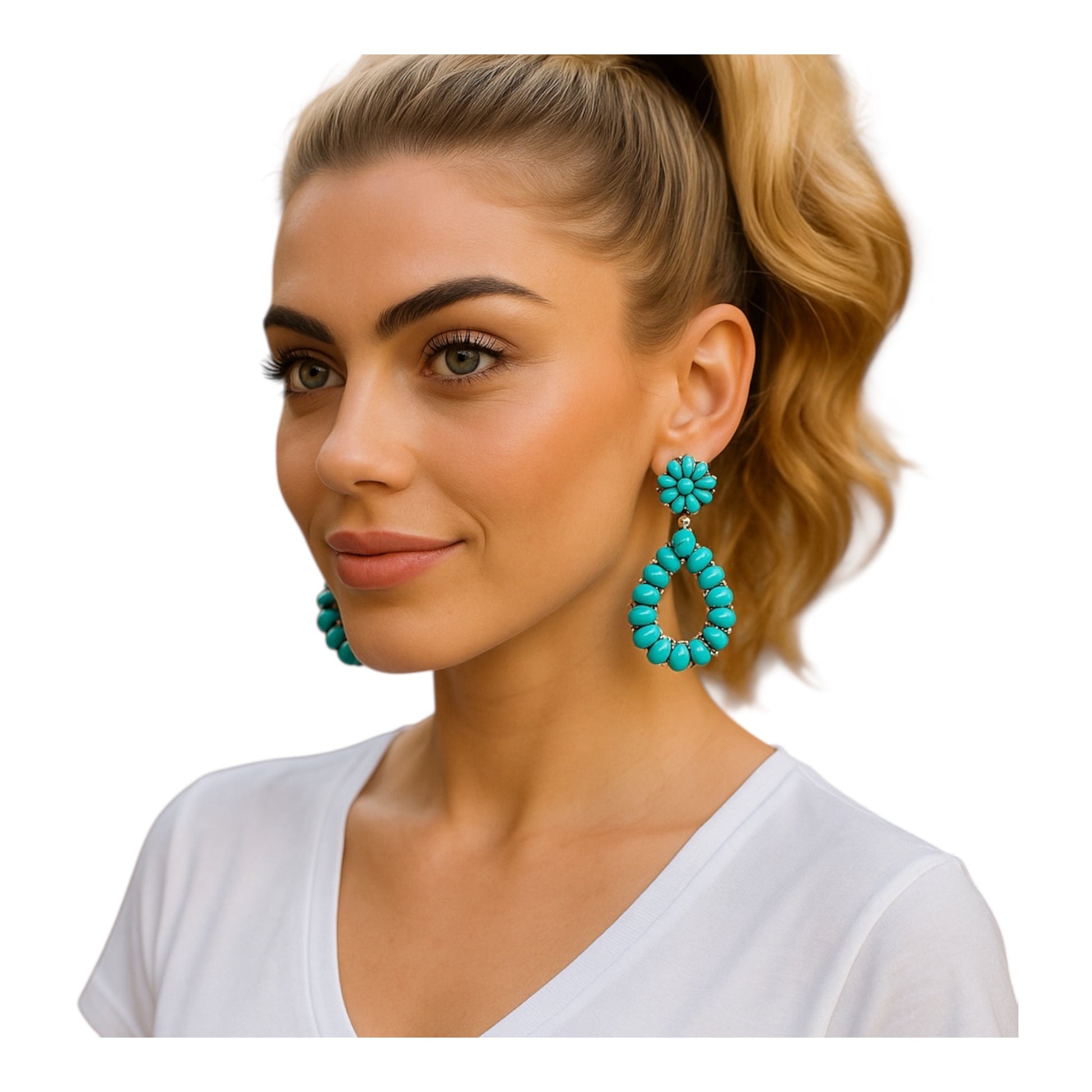 Our Thalia turquoise drop statement earrings are meticulously crafted to add a touch of elegance and sophistication to any outfit. Made with high-quality materials and featuring stunning designs, these earrings are a must-have accessory for fashion-forward individuals. They exude a sense of luxury and opulence, making them perfect for special occasions or everyday wear.